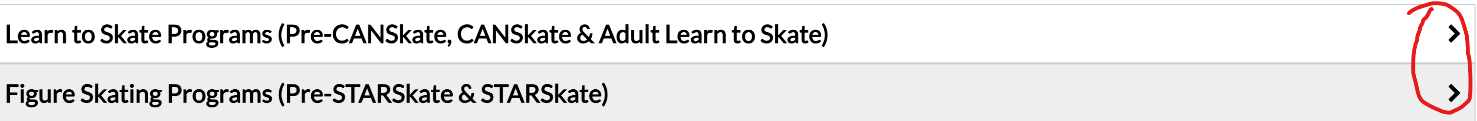 On the registration page, programs are grouped into logical categories which can be expanded using the arrows on the right side of the screen.