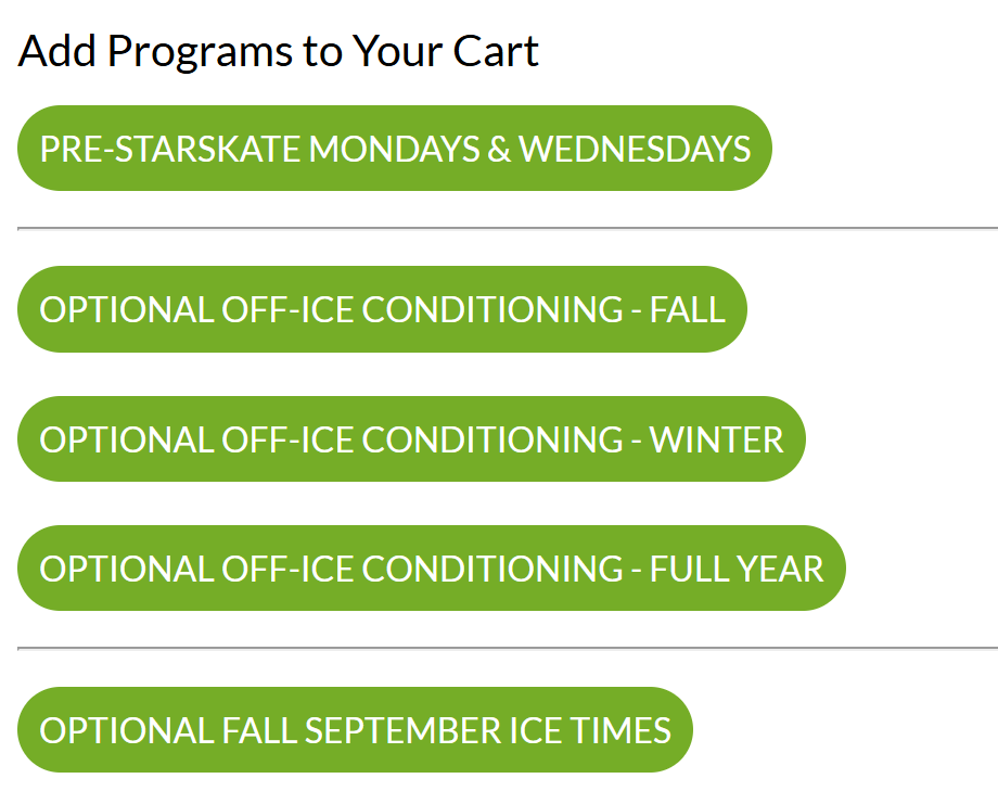 Navigate to the relevant program and use the green buttons to register a skater in that programming.